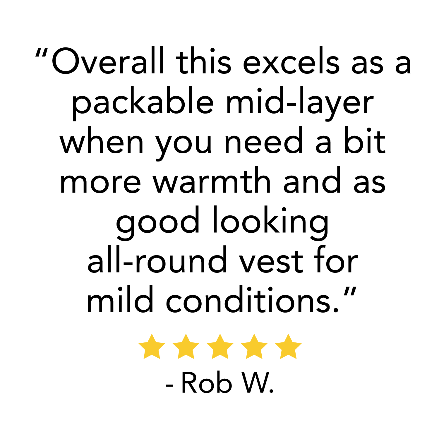 For those times when you need to keep your core warm, but it's not quite cold enough to warrant a jacket, reach for our Wilderness Vest. Its yoked shoulder seams allow for comfortable pack-wearing, and semi-auto locking zipper keeps everything in place while you're tearing up the trails.